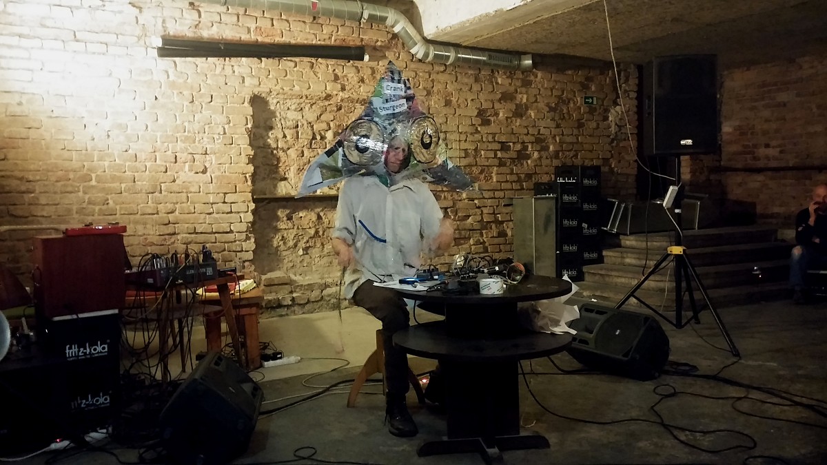 No a listopadové Wakushoppu, poslední v tomto kalendářním roce: Handa Gote, jedni z nejproslulejších performerů současné české avantgardy, a k nim "komický konceptualista" Crank Sturgeon, proslulý tím, jak na svém těle i jinde pracuje s kontaktními mikrofony. Handa Gote vlastně tak nějak nebyli špatní: nehráli dlouho, smyčkovali uměřeně, dokázali udržet pozornost.